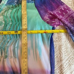 Elegant tunic with a blue and purple ombre pattern. Features intricate detailing and button accents. Ideal for casual outings.