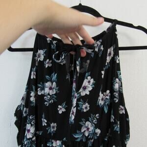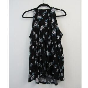 Torrid Size 1 1X Black Floral Print Baby Doll Tank Top Empire Waist Keyhole