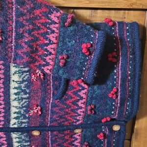 Tabi Vintage 90s Pure Wool Multicolor Knit Cardigan Size M