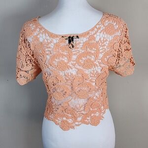 Lace Crop Top Mesh Womens Medium Cotton Peach Fairy Y2K Style Festival Boho Top