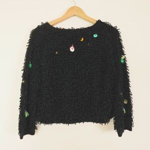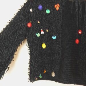 Berek Sweater Womens Small Black Chenille Looped Christmas Baubles Cardigan Vintage Holiday Tie Neck. Excellent pre-owned condition, no stains, tears, or signs of wear noted, please review all photos. See photos for measurements. Thanks for visiting!