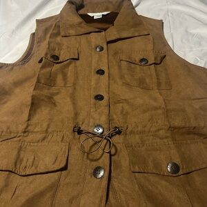 Women’s Draper’s & Damon’s Brown Micro Suede Vest Sz Large Pockets