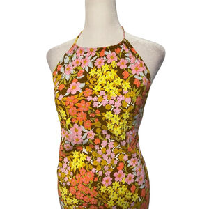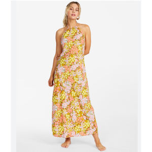 Billabong Retro Romance Sunny Side Up Floral Halter Maxi Dress Size Small