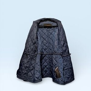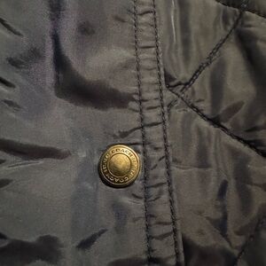 Coach blue light quilted jacket with cinched waist.