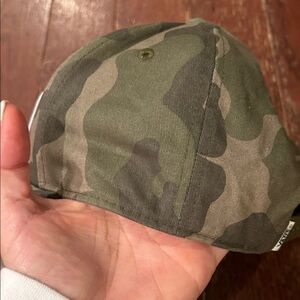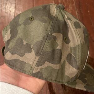 Green camo cap with bear logo patch. Features 'Off The Wall' slogan.