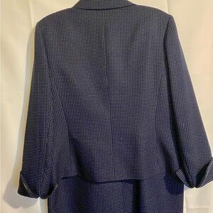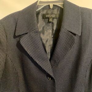 Kasper Women's 2-Piece Blue with White Polka Dots Skirt Suit Set Size 14 Midi