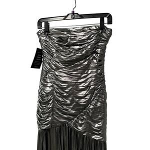 NWT Retrofete Strapless Formal Josie Dress in Gunmetal Metallic Gray Womens XS