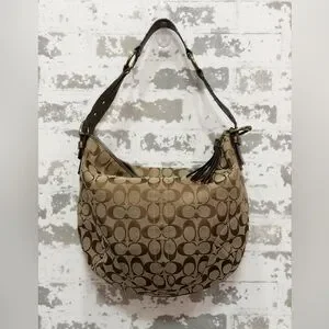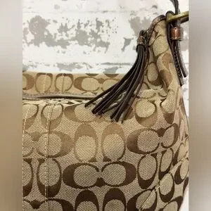 Elevate your style with this stunning Coach Lurex Hobo Bag (Style 8K37) featuring the signature metallic tan logo print and a gold python-embossed handle with chic buckle and ring detailing. This bag blends timeless Coach craftsmanship with a touch of glam — perfect for both everyday wear and special occasions.