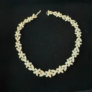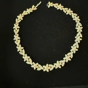 Popular in the mid 20th century, Kenneth Jay Lane was known for bold and glamorous jewelry. stunning gold floral necklace adds a touch of elegance to any outfit. Perfect for special occasions or everyday wear.