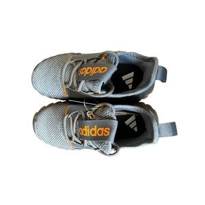 Comfortable Adidas sneakers for kids. Gray with striking orange details. Ideal for play and daily wear.