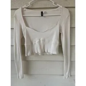 H&M Divided Ribbed Cream Long Sleeve Crop Top Medium