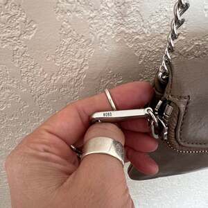 Hobo International Daria Leather Fold-Over Crossbody Clutch Bag in a versatile mushroom/taupe grey leather. This stylish 2-in-1 piece features a detachable silver-tone chain strap, allowing it to transition seamlessly from a daytime crossbody to an evening clutch.