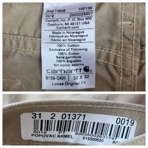 CARHARTT LOOSE ORIGINAL FIT PANTS 100% COTTON RUGGED KHAKI TAN 38 X 32