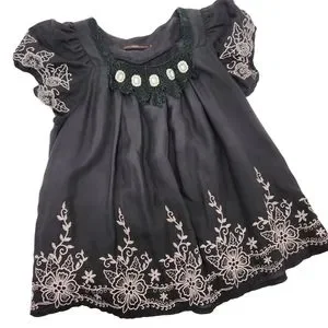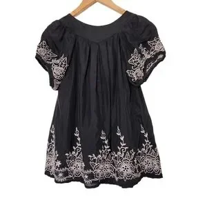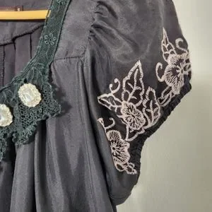 Anthropologie Hazel Embroidered Jeweled Black Top (S)