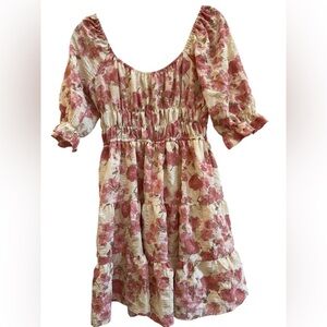 Liberty Love Pink Floral Babydoll Mini Dress Puff Sleeves Cottagecore