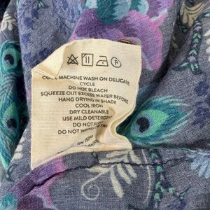 This Spell blouse is peak boho magic—floaty, romantic, and alive with their signature peacock-and-floral print in deep indigo, teal, and violet. The lightweight cotton–viscose blend gives it a beautiful drape, while the ruffled sleeves, tassel tie neckline, and button front add that effortless, free-spirited Spell vibe. Style it loose with denim cutoffs or tuck it into wide-leg trousers for a relaxed, Stevie-Nicks-meets-summer look. Perfect for festivals, weekends, or anyone who loves colorful, expressive bohemian pieces.