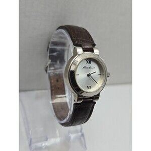 Eddie Bauer Roman Dial Womens Quartz Watch Brown Leather Band Silver New Battery