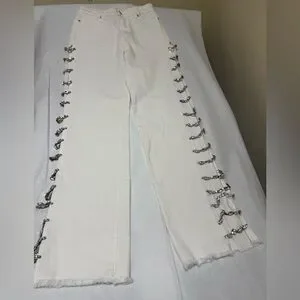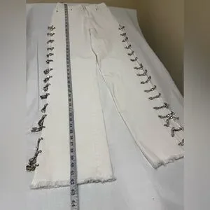 💥AKIRA Diamonds Metal Slit Raw Hem White Denim 💥