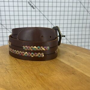 Lucky brand, leather, zigzag stitch accent, brass buckle belt S