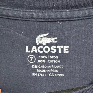 Classic Lacoste tee in dark blue. Features iconic logo. Ideal for everyday wear. Size 7(XL)