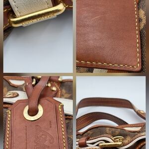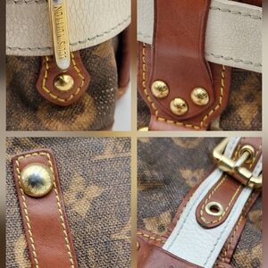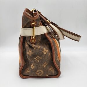 Unique and Rare Limited Edition Elegant Louis Vuitton shoulder bag. Features brown and tan design with gold accents. Ideal for everyday use.