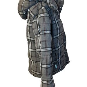 Vince Camuto Heather Grey Charcoal Checkered Plaid Puffer Jacket Size Small