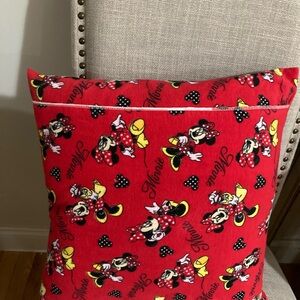 Vibrant pillow sham with Minnie Mouse in red and yellow attire. Perfect for Disney fans.