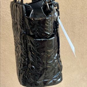 Ah-dorned | Classic Black Metallic Tote Bag w/ Crossbody Strap & Bag Charm Chain