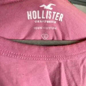 Soft pink tee with classic Hollister logo. Comfortable cotton fabric.