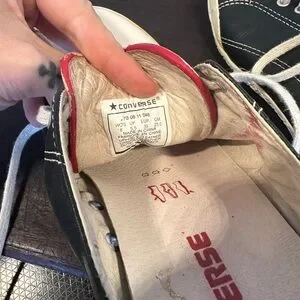 I’ve got a pair of limited edition 2009 Converse All Star sneakers in black leather, women size 8 (39). They feature a lace-up closure and rubber outsole, making it both stylish and comfortable for everyday wear. I cleaned and oiled the leather, and they’re ready for your closet!