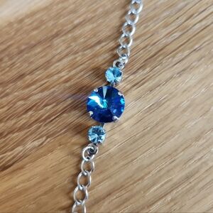 Blue Crystals & Silver Chain Bracelet, Hand Crafted