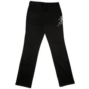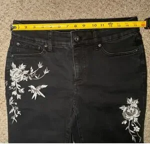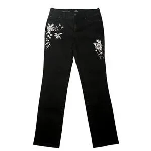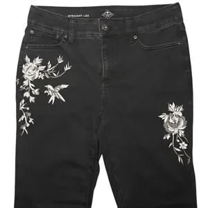 The amazing quality of the material ensures durability and long-lasting wear. The jeans are accented with beautifully embroidered flower detailing on the side of the pant legs, adding a touch of unique charm.