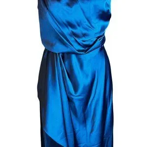 NWT XSCAPE One-Shoulder Satin Gown Ocean Blue Size 6