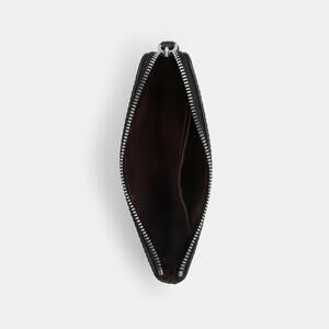 Printed coated canvas and smooth leather Two credit card slots Zip-top closure fabric lining Wrist strap attached 6 1/4 (L) x 4 (H) x 1/2 (W) Style No. CCK76