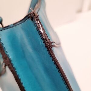 Vintage Chic turquoise shoulder bag with cutout handle. Y2K Stylish and versatile design. Two way carry. Detachable crossbody strap. Please look at all the pictures. Although it is Vintage, it's in great condition, but it does have a few "marks."
