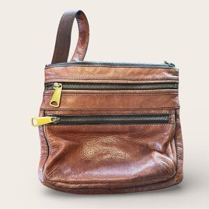 FOSSIL Vintage Explorer Crossbody Satchel Leather Bag. 12”x11” Great condition.