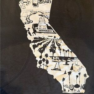 Stylish black tank top featuring a white California-themed design by artist Tim Collom. Never worn! Perfect for casual wear. Size tag torn off but size 6. Open to offers