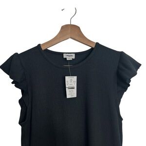 J.Crew Women’s Black Vintage Rib Ruffle Sleeve T-Shirt Cotton Modal Size Small