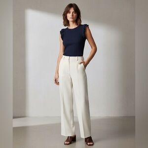 -our lightweight cotton blend inspired by easy styles of the '70s, with a very soft feel and just a hint of stretch. We crafted it into this ruffle-sleeve shirt, which is a top contender for tee of the season.