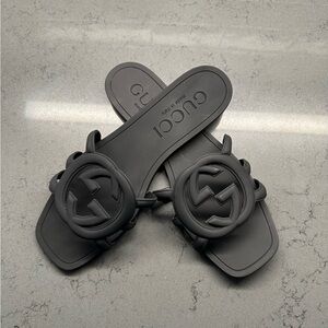 Gucci “Palma” GG Black Rubber Slide Sandals Women’s 9 / EU 39.5