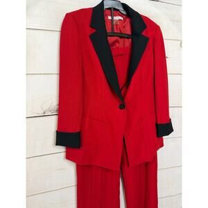 Peter Nygard Red 2 Pc Suit Black Trim Sz 8p Holiday Party Unique Festive