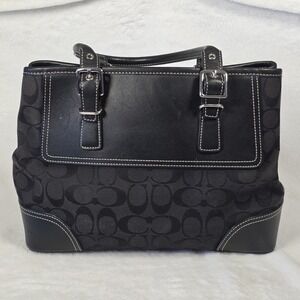 Coach Black Hampton Signature Jacquard Canvas Satchel Hobo Handbag F06366