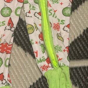 Celebrate the holidays with this festive kids one piece, featuring a cheerful Christmas print. The bright green accents add a playful touch, perfect for the season.