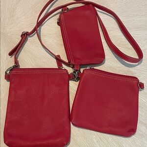 Levenger Chic Red Crossbody Bag 3 Interchangeable Pouches