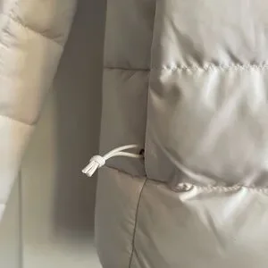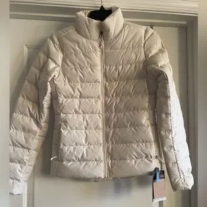 Take on cold, wet weather with confidence in this durable water-repellent jacket complete with lightweight insulation. 25" length, Front zip closure, Stand collar, 50-denier shell with non-PFC durable water-repellent (non-PFC DWR) finish. Lined, with 50% 600-fill-power recycled down, 50% synthetic insulation. Size: XS, color: white dune.
