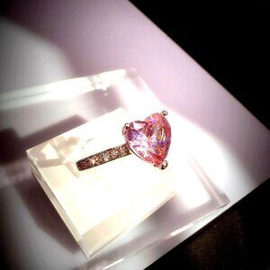 Pink Cubic Zirconia Heart Cut Ring Silver Tone Size 7