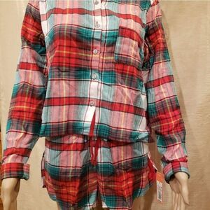 Colsie plaid flannel notch collar pajama set ,new, size medium,drawstring,