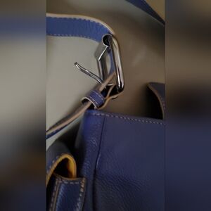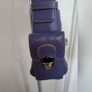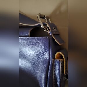 Elegant blue-purple leather shoulder bag with stylish zipper accents. Perfect for any occasion.