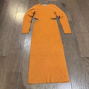 TALULAH Ribbed Knit Cutout Maxi Dress Burnt Orange Long Sleeve Size L