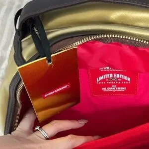 Sprayground Drip Checkered Backpack in Gold and Brown